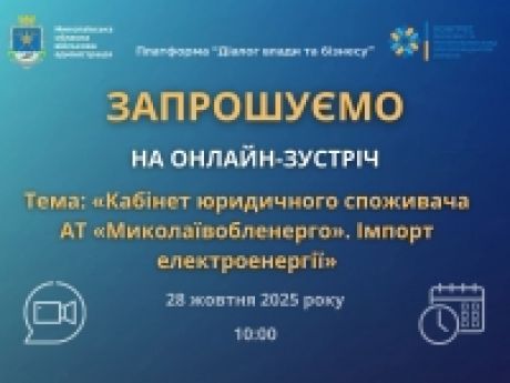 Під час зустрічі ви зможете поставити представнику AT «Миколаївобленерго» свої питання щодо особливостей використання кабінету юридичного споживача, а також інших питань.