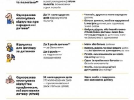 - Оплачувані відпустки у зв’язку з вагітністю та пологами.