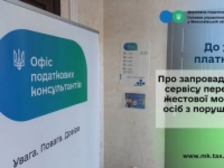 Наразі сервіс перекладу жестової мови діє у центрах обслуговування платників та Офісі податкових консультантів Головного управління ДПС у Миколаївській області.