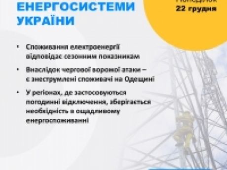 Споживання електроенергії відповідає сезонним показникам. Сьогодні, 22 грудня, станом на 9:30, його рівень був таким же, як в цей час попереднього робочого дня – у п’ятницю, 19 грудня.