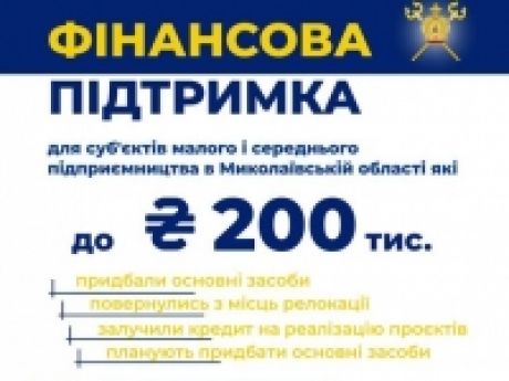 Миколаївською обласною військовою адміністрацією спільно з Регіональним фондом підтримки підприємництва у Миколаївській області, оголошено конкурс серед підприємців області на отримання фінансової підтримки.